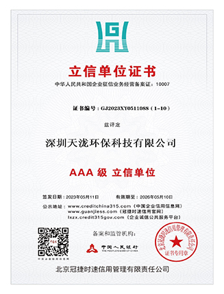 天瀧環(huán)保擁有多家專業(yè)機(jī)構(gòu)認(rèn)證證書包含了:CEP環(huán)境保護(hù)認(rèn)證,設(shè)備第三方專業(yè)機(jī)構(gòu)檢測認(rèn)證,同時(shí)公司獲得了ISO9001管理體系認(rèn)證,CE歐盟認(rèn)證等多項(xiàng)權(quán)威證書。同時(shí)自主研發(fā)的產(chǎn)品多達(dá)幾十件均有專利證書,信用3A認(rèn)證,太平洋保險(xiǎn)合作伙伴,中國節(jié)能產(chǎn)品,環(huán)保設(shè)備稱號(hào)等。